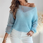 Why Choose Women's Sweater Fashion Solid Color Ribbed One Shoulder Knitted Long Sleeve Regular Tops Knit Holiday Going out Weekend Blue Spring?