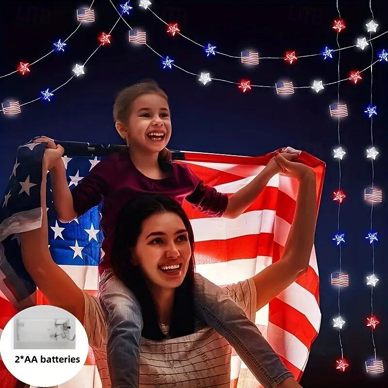 $8.99 - Patriotic LED String Lights Independence Day Decor Lights 2m 20LEDs Battery Powered Fourth of July Stars Fairy Lights Red White Blue Holiday Home Decoration 2025. Shop for cheap Battery String Lights online? Buy at lightinthebox.com on sale today!